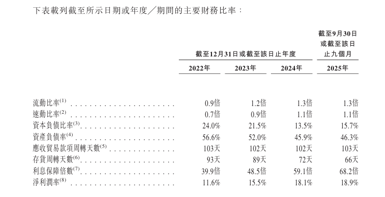 于2022年度、2023年度、2024年度、2025年截至9月30日止九个月,公司对应净利润率为11.6%、15.5%、18.1%、18.9%。