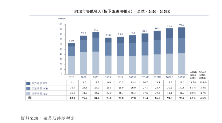 根据弗若斯特沙利文的资料,随着AI的普及、数据中心、车联网、机器人及物联网(「IoT」)应用的扩展,全球对全面电子设备的需求持续增长。PCB作为电子产品的关键组件,正迎来重大增长机遇。