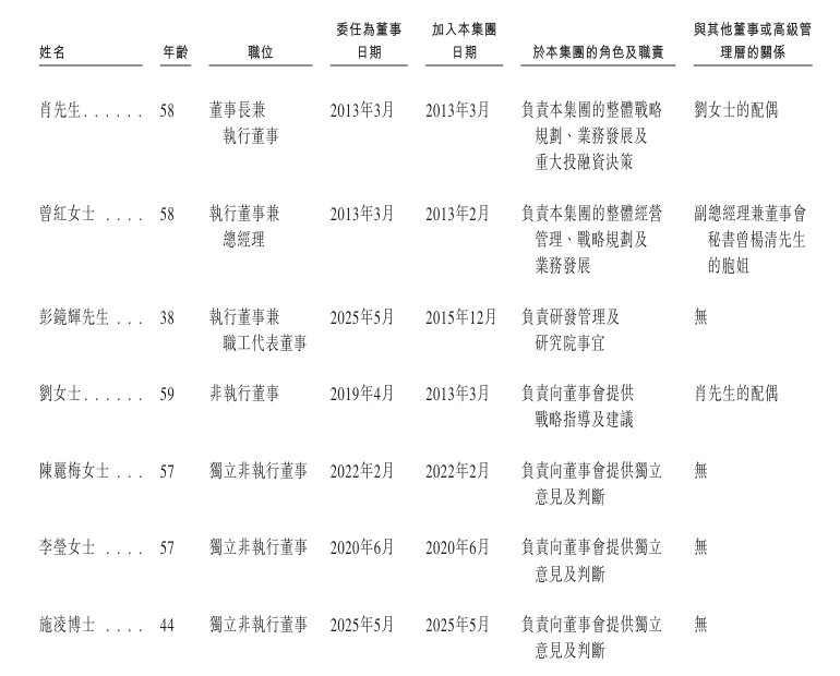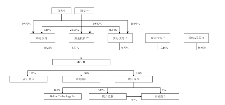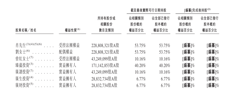 截至2025年12月7日,公司分别由臻蕴投资持有约40.2%股权,而臻蕴投资由肖先生持有99.90%股权及由肖先生配偶刘女士持有0.10%股权;广生投资持有约6.77%股权,而肖先生(作为其唯一普通合伙人)对广生投资拥有控制权;及广财投资持有约6.7%股权,而肖先生(作为其唯一普通合伙人)对广财投资拥有控制权。