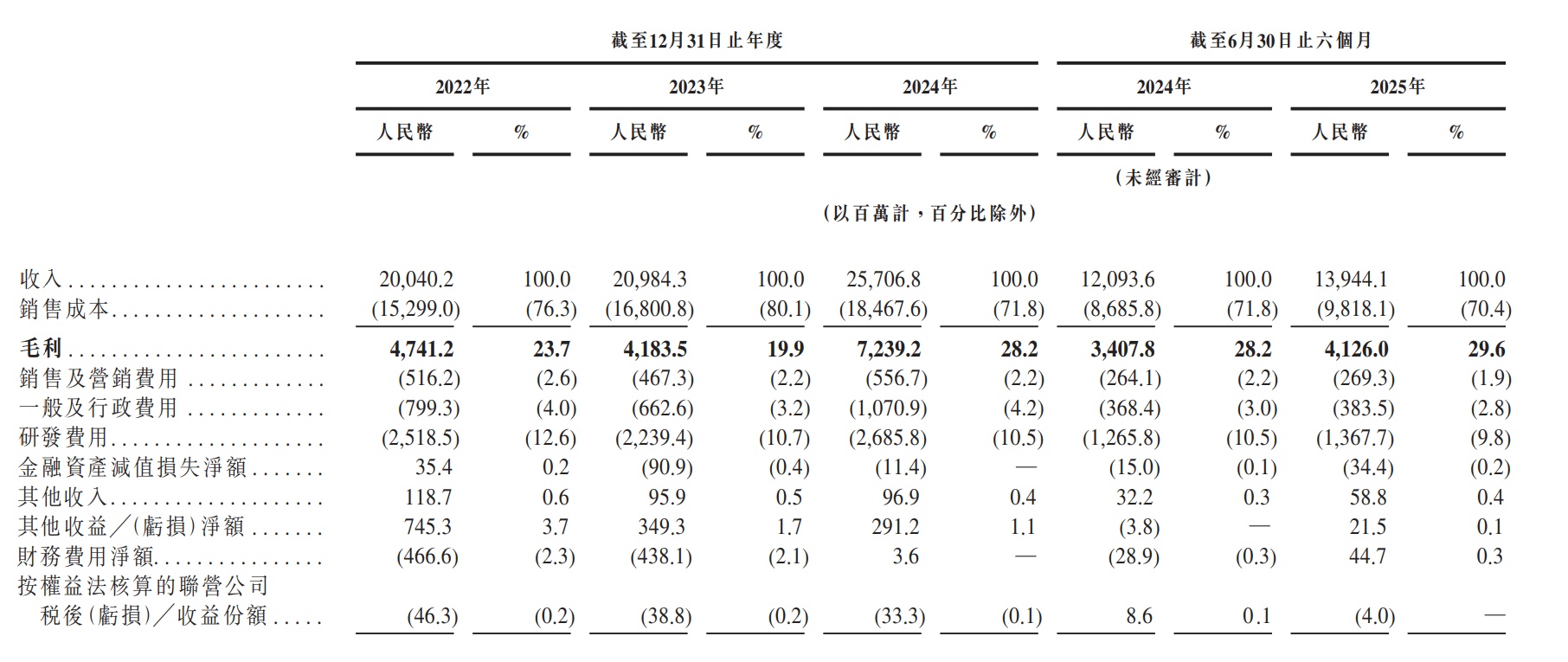 财务方面,于2022年度、2023年度、2024年度以及2025年1-6月,豪威集团实现收入分别约为200.4亿元、209.84亿元、257.07亿元以及139.44亿元人民币;同期年内利润分别为9.51亿元、5.44亿元、32.79亿元以及20.2亿元人民币。