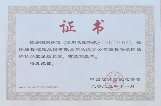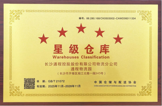 12月初,从“中国仓储与配送协会”传来喜讯,长沙通程控股(000419)股份有限公司物流分公司凭借持续稳定的运营管理水平与前瞻性的绿色发展布局,再度斩获两项行业行业权威认证:继2025年6月荣获“国家一级绿色仓库”证书,成为国家绿色仓储新规引入国际ESP认证后的全国首批获评企业后,2025年11月再度通过严苛评审,连续第四次摘得“五星级仓库”荣誉称号,实现了标准化建设与绿色化转型的双重跨越。