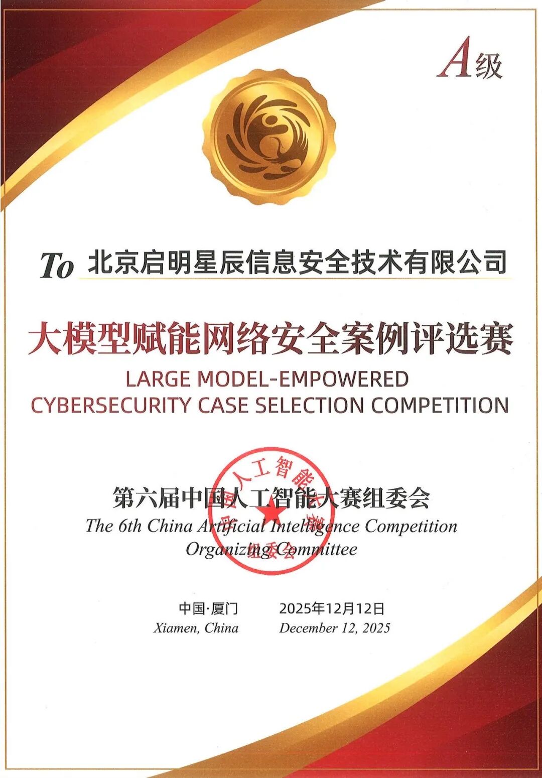 近日,由国家互联网信息办公室、公安部指导,厦门市人民政府主办的第六届中国人工智能大赛圆满落幕。启明星辰(002439)凭借在大模型与网络安全融合领域的技术突破与创新实践,成功斩获“大模型赋能网络安全案例评选赛”最高等级A级证书。