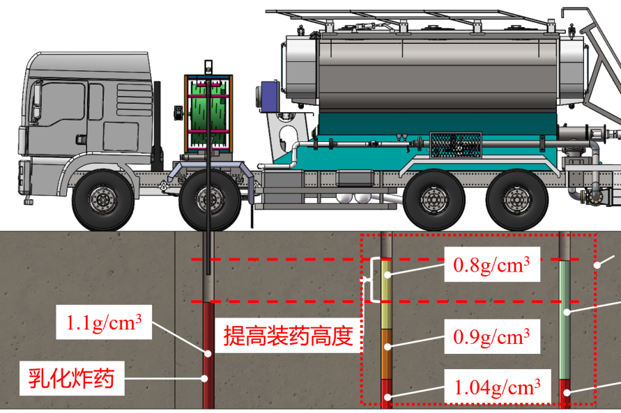 目前,公司是国内唯一自主研发并掌握现场混装水胶炸药技术的公司,该项技术包括公司独有的单管多组份同步输送技术、即时静态敏化/交联技术、高精度动态配比技术以及智能化交互控制技术等多项高端技术。现已实现了现场混装水胶炸药密度实时可调(炸药与岩石匹配)、单孔多密度连续化装药、水孔装填低密度炸药不上浮等功能。