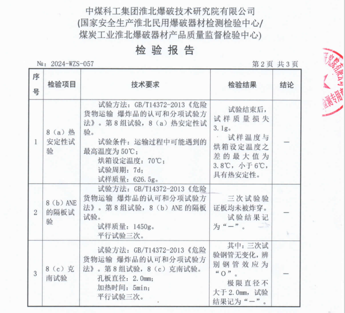 2024年11月,现场混装水胶炸药工艺技术与装备通过工信部科技成果鉴定。鉴定结论为:该项目高威力型为引进消化澳大利亚公司技术,填补国内空白,达到国际先进水平;普通型为原创技术,具有国际领先水平。