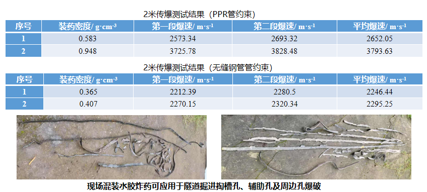 经试用,现场混装水胶炸药具有良好的抗水性、遇水孔可正常装药,密度调节范围广;可实现单孔多密度连续化装药,有效减少爆破后根底,能够满足爆破需求,爆破效果良好。