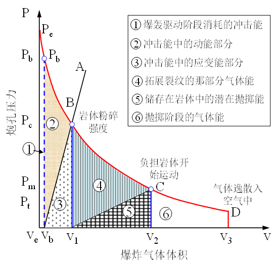 能量传输控制效率理论计算结果表明:在稳定爆轰条件下,高威力水胶炸药的装药密度低于普通型水胶炸药,其爆破能量利用率较高,能更有效地作用于岩石破碎区,从而改善岩石破碎块度分布。