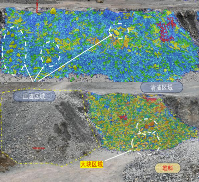 试验采集爆破后爆堆块度数据,并采用 WipFrag 块度图像分析软件分析爆堆表面大块率和分布特征。经分析,爆破大块率达到预期管控目标,各项指标均符合施工规范要求。