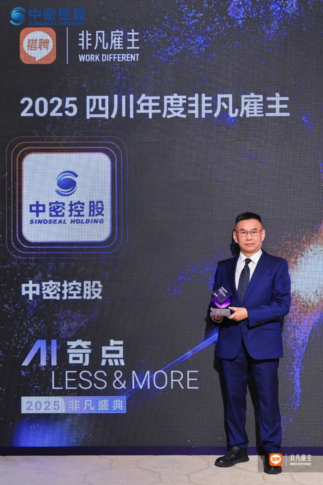 12月12日,猎聘2025年度非凡盛典.中西南站在广州举办,公司党总支委员、工会副主席、财务总监刘小强参会。公司凭借多元包容的职场生态与持续创新的组织实践,在众多企业中脱颖而出,中密控股(300470)再次荣膺“四川非凡雇主”荣誉称号。