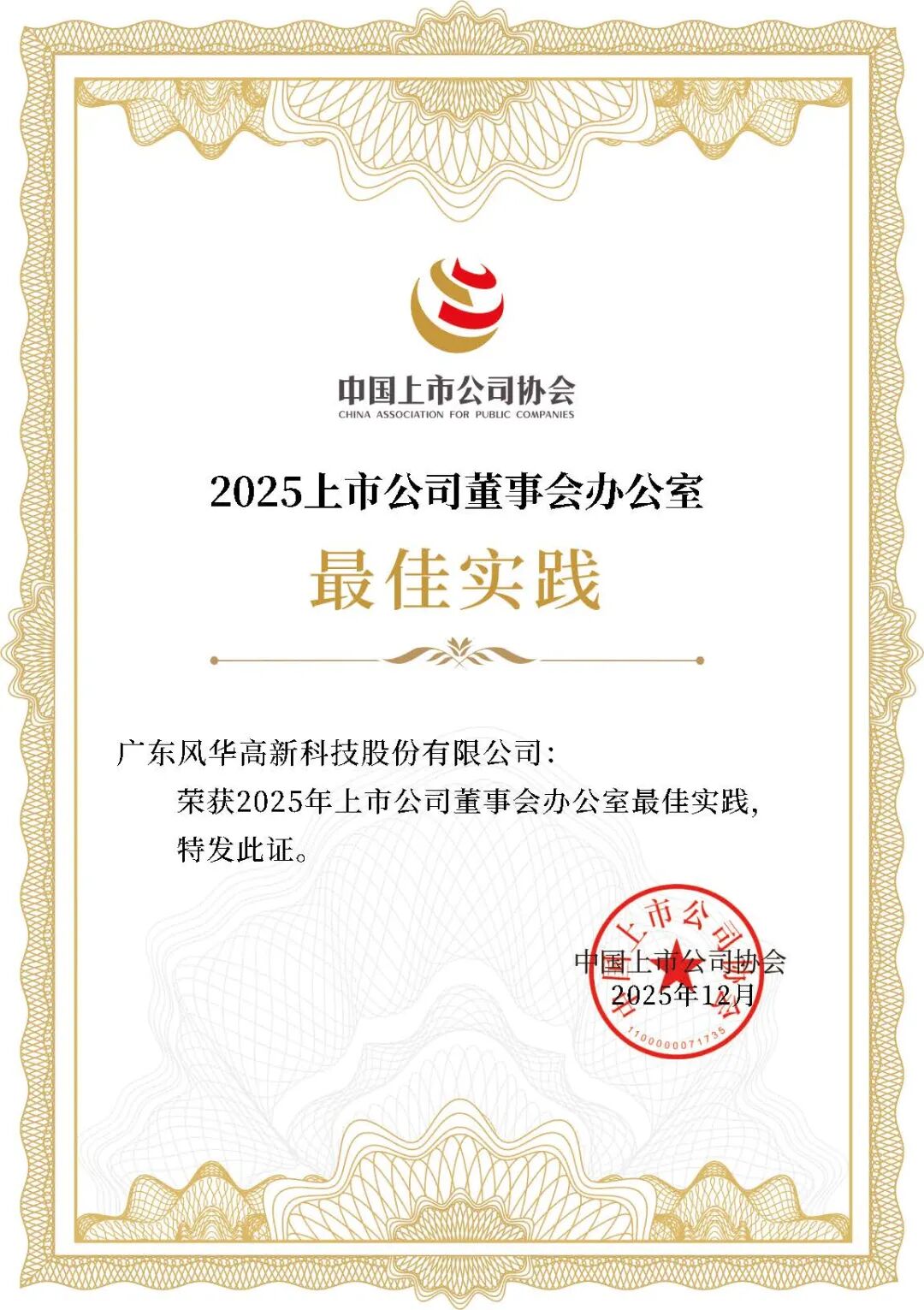 风华高科荣获“2025年上市公司董事会办公室最佳实践”案例