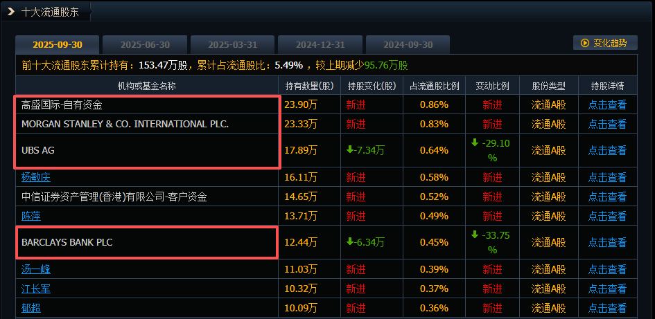 更值得关注的是,南方路机同时获得了四大国际巨头的青睐,在三季报里,高盛国际、摩根士丹利(MORGAN STANLEY&CO.INTERNATIONAL PLC.)、瑞银集团(UBS AG)、巴克莱银行(BARCLAYS BANK PLC)均出现在了南方路机最新十大流通股东名单中,以真金白银表达对南方路机的认可。