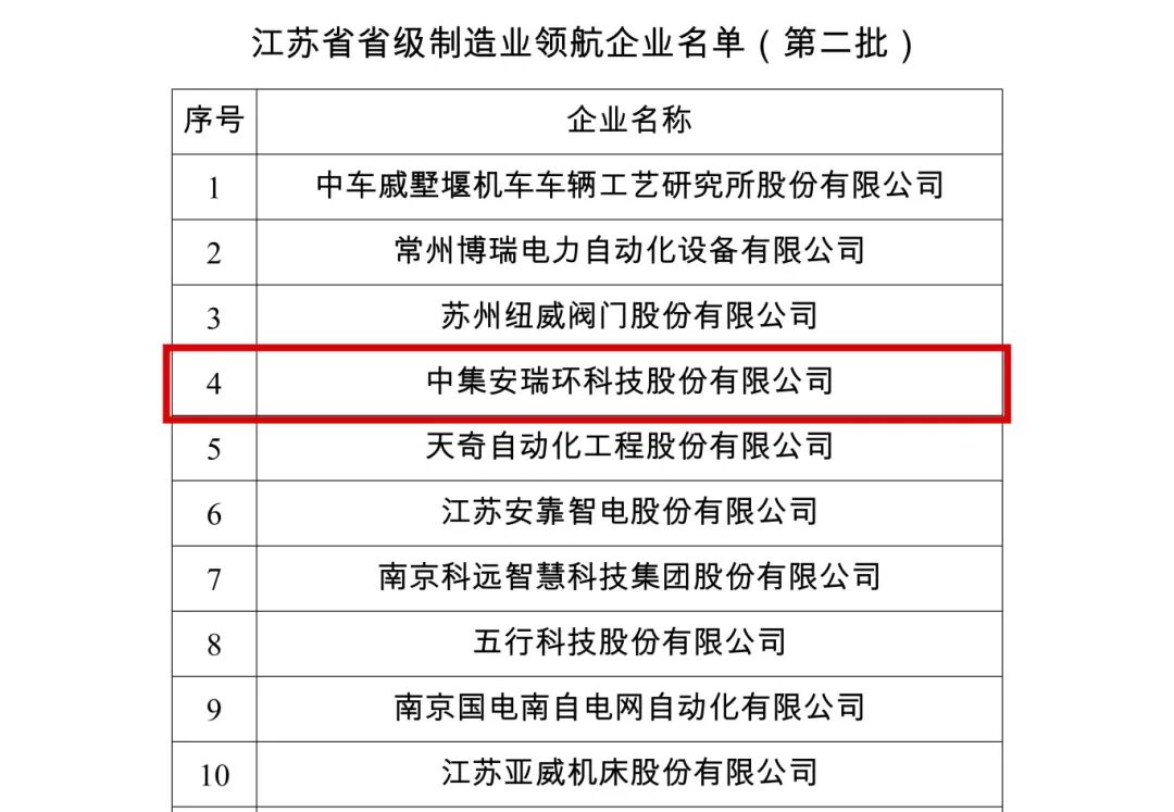 近日,江苏省工信厅公布了第二批省级制造业领航企业名单,全省仅 55 家制造业企业入选。中集安瑞环科技股份有限公司(简称 “中集环科(301559)”)凭借自身先进的制造水平、持续的创新能力和显著的行业带动作用等综合实力,荣登该重磅榜单。