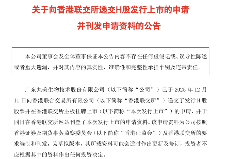 日前,广东丸美生物(603983)技术股份有限公司(下称丸美生物,603983.SH)正式向港交所递交上市申请书,高盛、中信证券为联席保荐人。丸美生物表示,此次拟于H股上市,旨在增强资本实力与境外融资能力,进一步提高综合竞争力,加快公司业务的国际化战略。