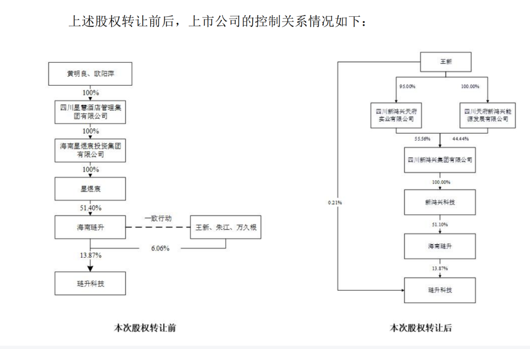 转让完成后,新鸿兴科技对海南琏升的出资比例从34.69%提高至51.10%,成为海南琏升新控股股东。