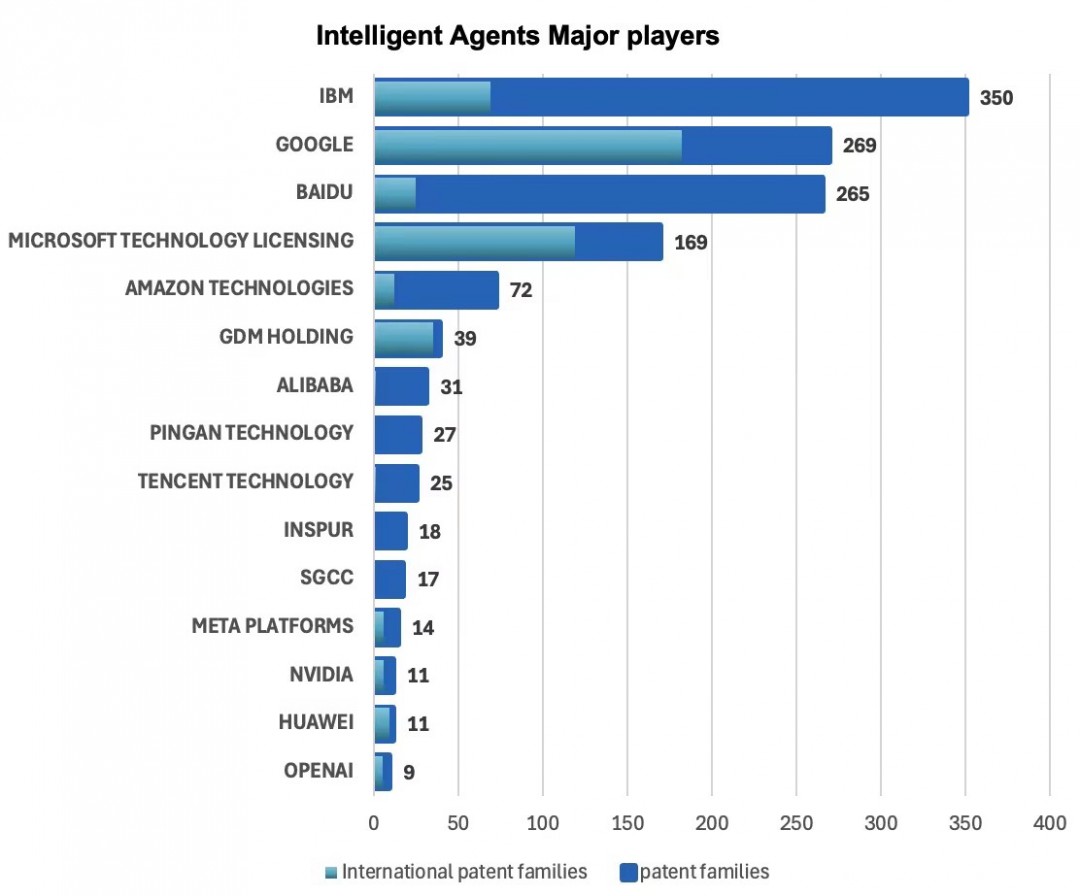 在多模态AI、智能体、数字人等前沿方向,百度逐步构建起全面、体系化的专利矩阵,相关领域专利申请量均居国内首位。尤其在智能体领域,百度以265件专利申请量位列国内第一,全球第三。