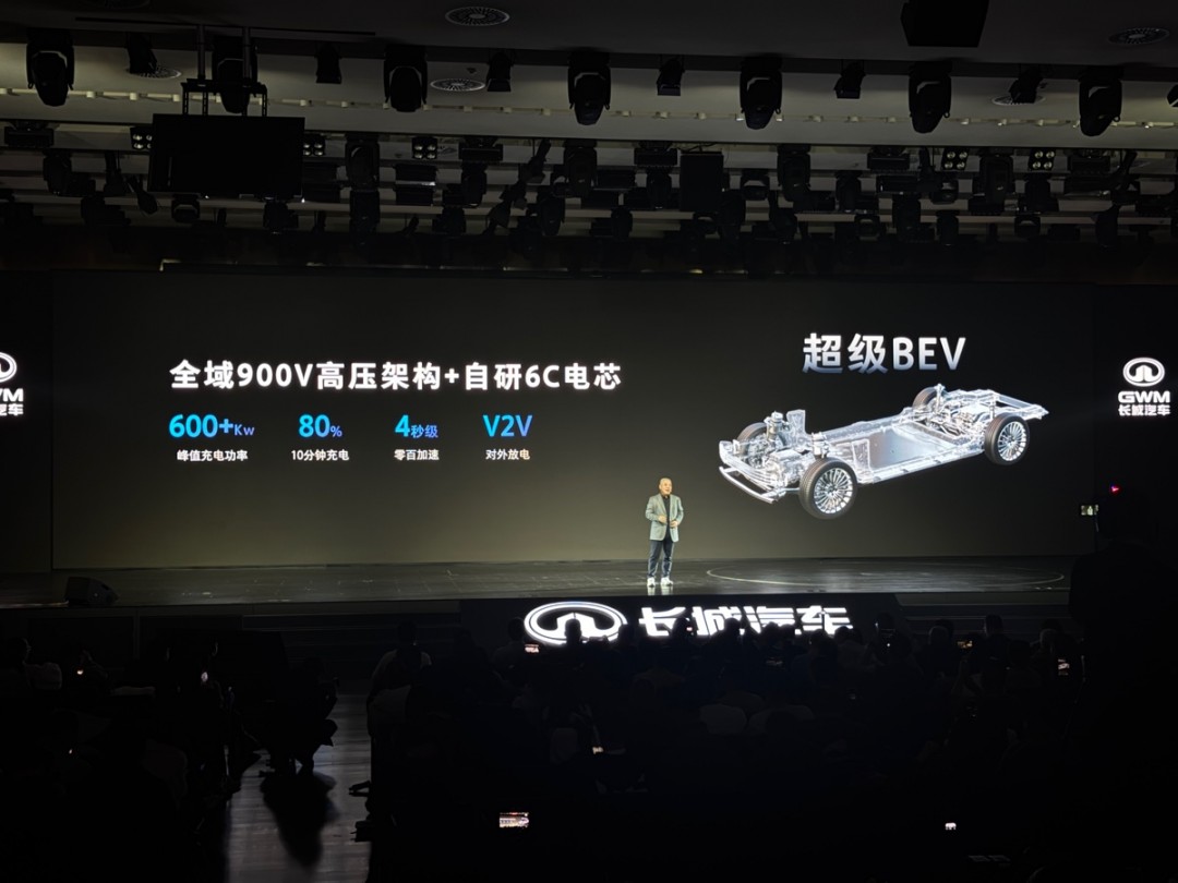 BEV 车型搭载全域 900V 高压架构与自研 6C 电芯,峰值充电功率超 600 千瓦,10%-80% SOC 充电仅需 10分钟。
