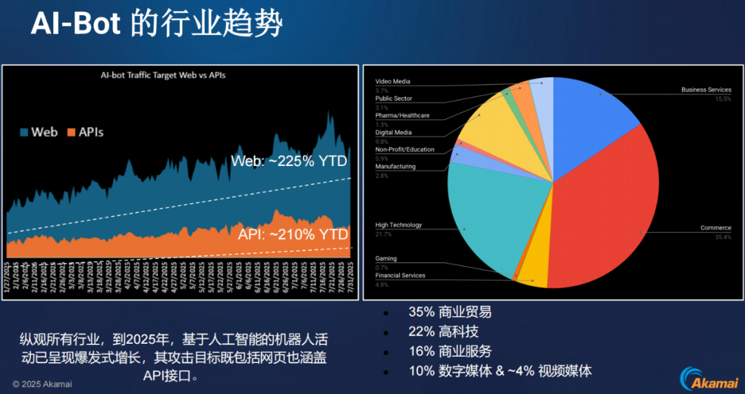 其中“AI带来的威胁”,主要聚焦在AI-Bot(AI爬虫)大量增长和API流量快速增长方面。