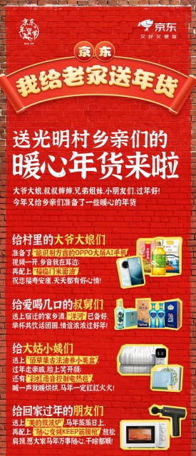 1月26日消息,刚刚,京东官微发布消息,京东正式开启2026年”我给老家送年货”活动,首站光明村。同时,还宣布1月28日晚将在光明村上演一场特别的”村晚”。