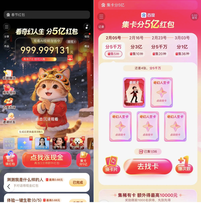 2月3日消息,从百度渠道获悉,针对百度APP春节5亿红包活动及百度AI在2026北京广