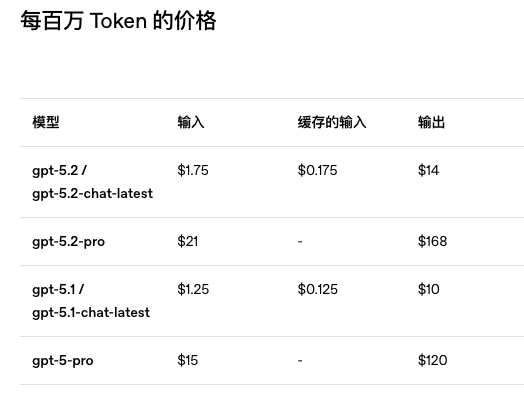 在API价格方面,GPT-5.2的调用价格较上一代上调,输入端1.75美元/百万tokens(约合人民币12.35元/百万tokens)、输出端14美元/百万tokens(约合人民币98.81元/百万tokens)。GPT-5.2 Pro的定价为21美元与168美元/百万tokens(约合人民币148元与1185元/百万tokens)。