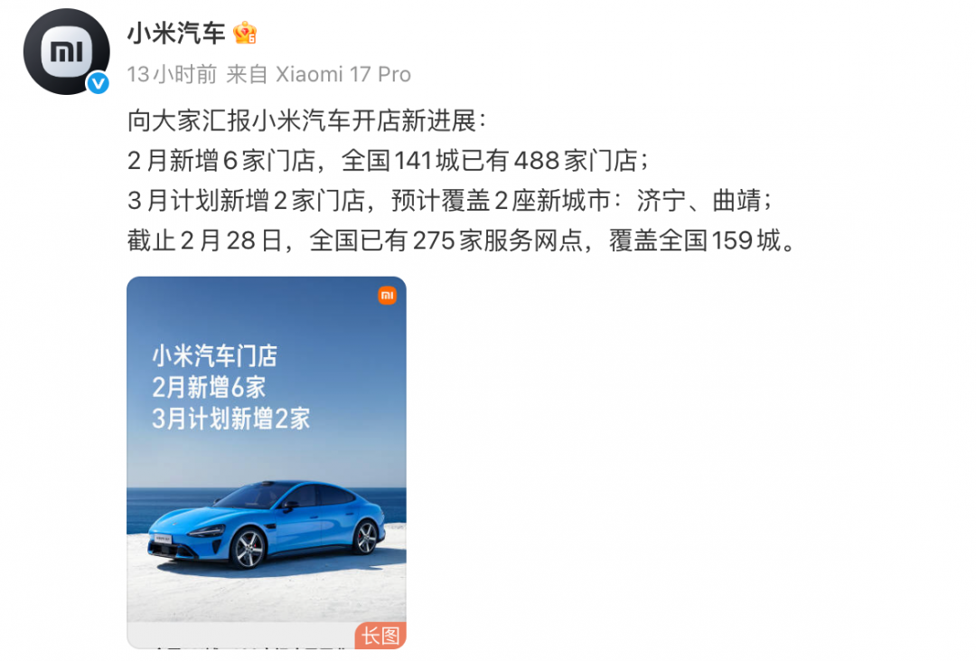 3月1日消息,小米汽车官宣,2026年2月,小米汽车交付量超过20000台。同时,正在为新一代SU7大规模量产做准备。