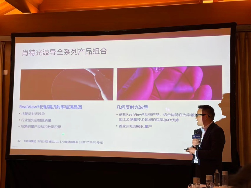 肖特中国区总经理陈巍介绍,2026年,肖特将扩建苏州 AR 技术中心,围绕两大波导技术开展联合创新和定制化开发,并设立自动化与工业工程中心,全面提升其在中国的创新与制造能力。