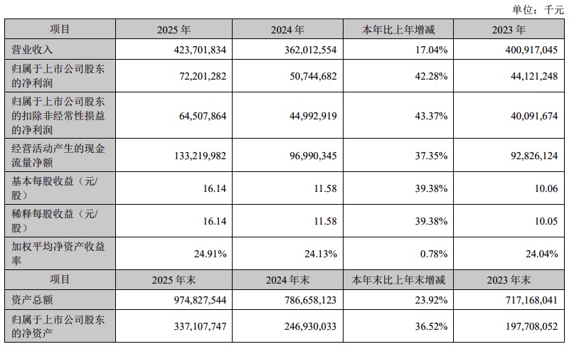 3月9日晚,宁德时代发布2025年年报。数据显示,公司全年实现营业收入4237亿元,同比增长17%;归母净利润722亿元,同比增长42.28%。简单计算,宁德时代平均每天净赚1.98亿元,业绩规模创历史新高。