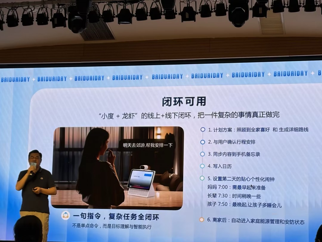以往调用“龙虾”,往往需要解锁手机、打开应用、发布指令等多个步骤。小度龙虾通过自然语音交互,让用户只需开口即可发起复杂任务,大幅降低AI Agent使用门槛。