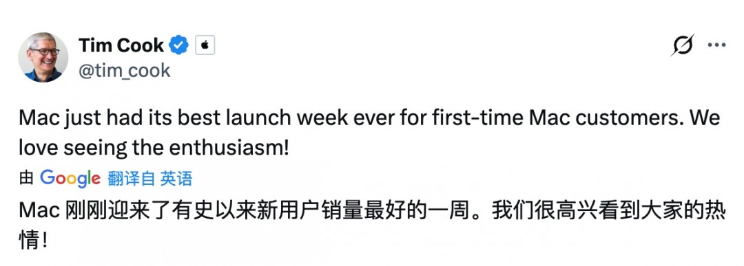 库克确认:苹果新款Mac首销破纪录!