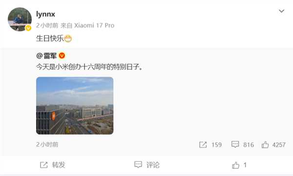 雷军晒图庆祝小米创办16周年!16年老员工感恩:生日快乐 永远相信美好的事情