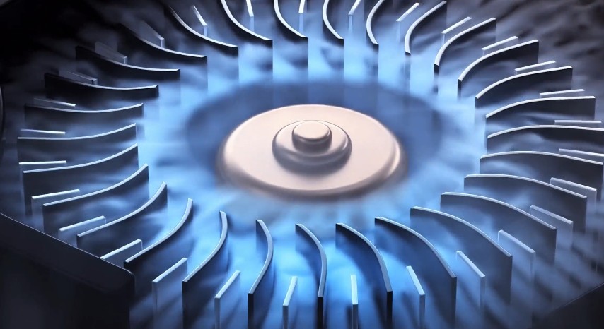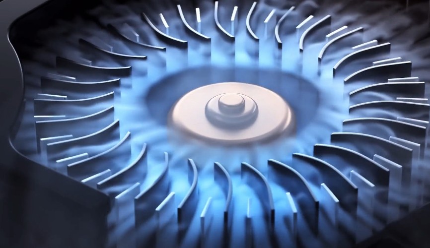 这套风驰散热架构由三大核心部分组成:仿生羽翼涡扇、超导热弯流翅片与隐藏式无感出风结构。其中仿生羽翼涡扇通过 AI 热流噪智能优化算法调校叶片参数,加入仿生分流叶片设计,在同等噪音条件下实现了单体风量 60% 的提升,功耗反而降低 20%;