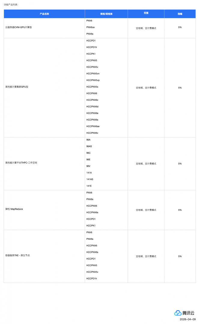 腾讯云官宣涨价:AI算力、容器、EMR都要涨