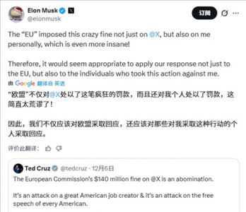 欧盟对X平台开首张《数字服务法案》罚单 马斯克呼吁“废除欧盟”引发争议