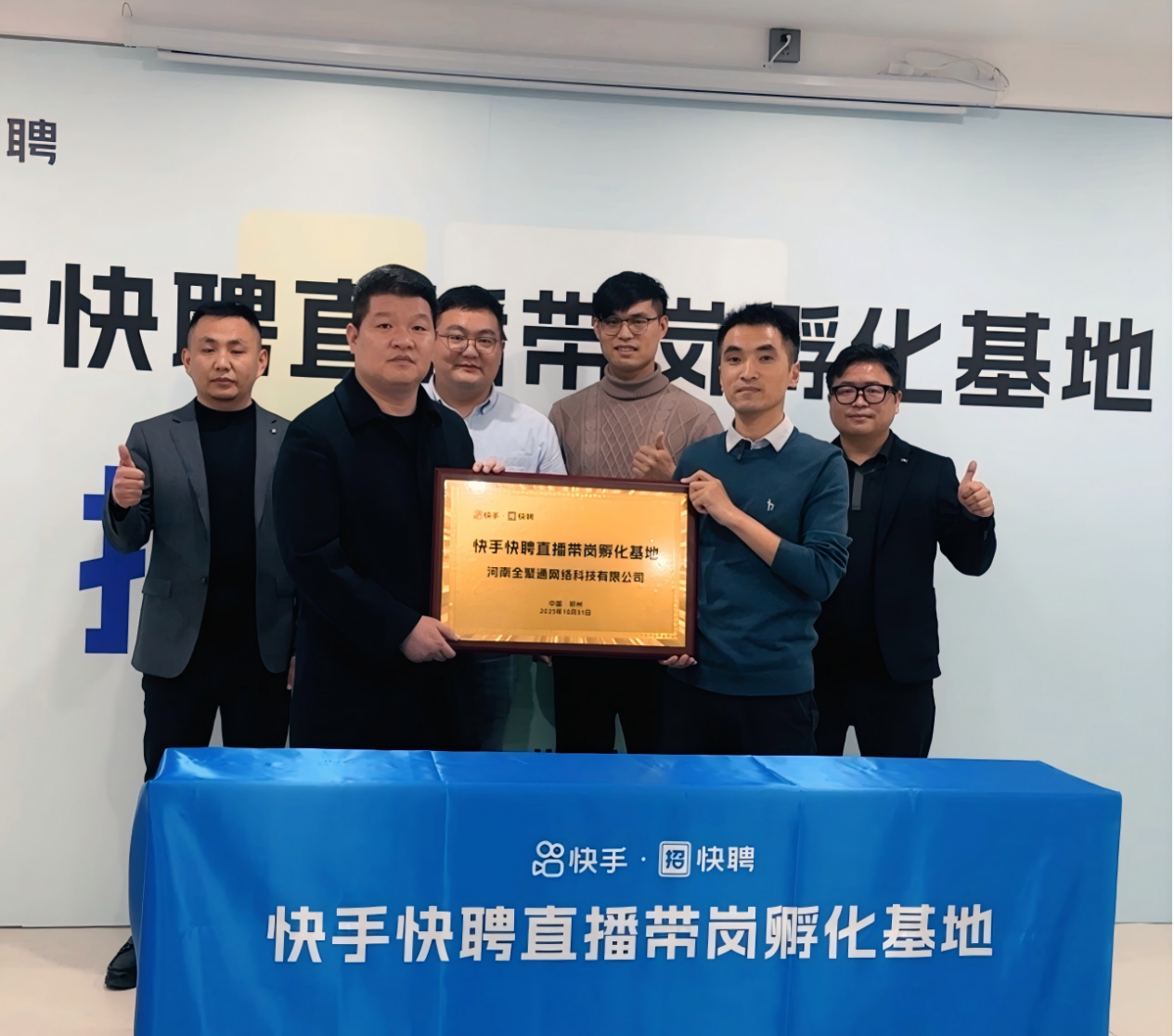 近日,河南郑州迎来人力资源服务领域的重要时刻——“快手快聘直播带岗基地”授牌仪式隆重举行。该基地由快手快聘官方正式授权,落地河南全聚通网络科技有限公司,标志着快手快聘与全聚通的合作关系从业务代理全面升级为生态共建,也意味着中原地区蓝领招聘数字化转型迈出关键一步。