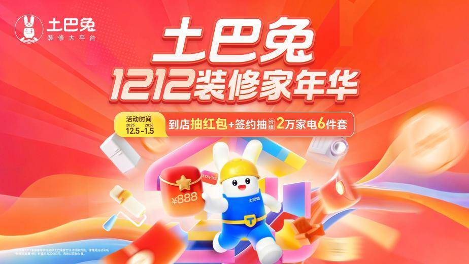 年终家装热潮来袭,土巴兔2025年12.12装修家年华将于12月5日启动,持续至 2026年1月5日,以“全链条优惠+创新服务+坚实保障”为核心,推出四大板块玩法。用户可通过土巴兔APP、小程序等渠道一键参与,解锁从量房、签约到建材选购的全链条优惠,更有平台资金托管及第三方质检服务保驾护航。