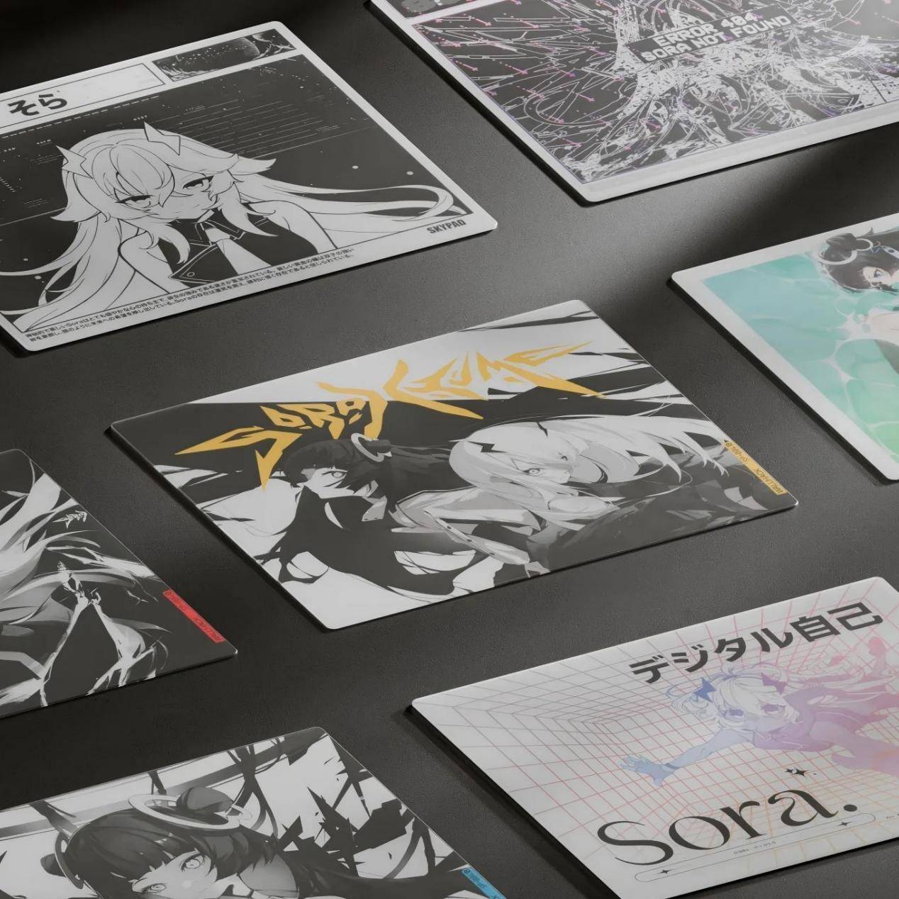 SP-004 / SP-004A:第四代代表作,被玩家誉为“毕业级”玻璃鼠标垫。尺寸分别为490×430mm与450×390mm,厚度约3.9mm,面向专业竞技市场及小桌面使用。VA-005:第五代速度款,510×440mm超大尺寸,3mm超薄钢化玻璃,低摩擦力设计,CNC三段式倒角带来柔和触感,稳固性显著提升。SP-005:第五代旗舰款,采用2.5D磨边与密集凹陷网格结构,厚度仅2.5mm,兼具顺滑与稳定手感。CR-005:第五代控制垫,通过特殊表面处理实现玻璃材质与布垫级控制感并存,兼顾速度与精度。情感联结:通过原创IP与用户建立深层文化共鸣