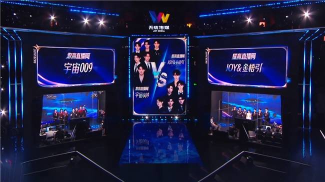 无忧之夜2025年度盛典以“天生敢耀”为主题,生动诠释了无忧传媒飞速发展的非凡历程。对无忧传媒而言,已举办6届“无忧之夜”,其意义早已超越一场普通晚会,升华为一个能够有效连接达人、粉丝与品牌的核心IP,成为无忧传媒每年最为重要的展示窗口之一。晚会一开场,由无忧传媒打造的宇宙101厂牌、JOY&金梧引等男团便带来《火力全开》、《万物生》团播大秀,瞬间点燃全场。本届无忧之夜打造“直播间比拼和主舞台展演””全新赛制,晚会别出心裁地在主舞台对面设立了“敢赢直播间”与“耀赢直播间”,让观众通过直播间实时弹幕投票,直接决定两个直播间的表演者能否从“小屏”走向“大屏”。深受大家喜爱的团播——男团“宇宙009”和“JOY&金梧引”打头阵,最终“宇宙009”在粉丝的互动助力下,获得了在主舞台表演的机会。