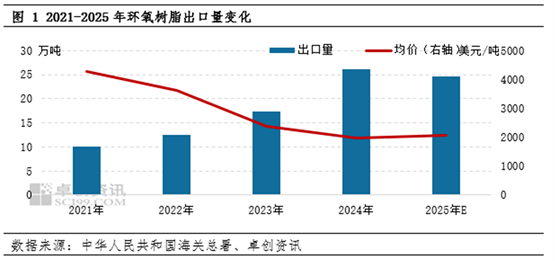 环氧树脂:近年来出口整体延续增长趋势,2025年出口量小幅回落