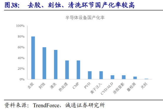此外,根据兴业证券,国产半导体设备产业除遵循“技术周期”和“库存周期”驱动外,还受益于国产替代需求,且不仅在于本身各类半导体设备工艺环节的国产替代,还在于需求端芯片设计企业的国产替代,在于制造端逻辑、存储晶圆制造的国产替代。