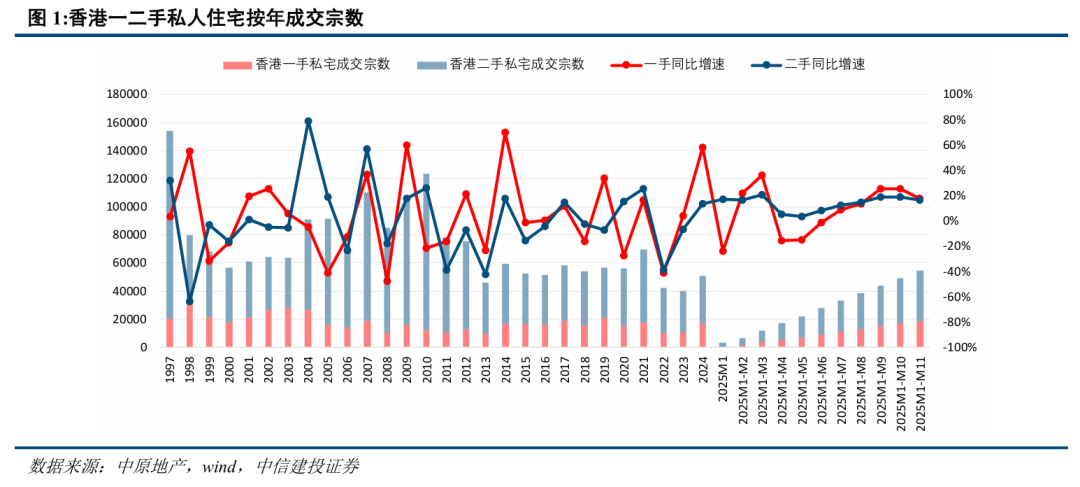 中信建投(601066)证券发布研报称,香港住宅成交自2025年3月起开始放量,2025年全年一二手私宅成交有望超过6万宗,达到近13年以来仅次于2021年的第二高水平;3-5月香港房价完成筑底,2025年全年二手住宅价格有望增长4.5%。