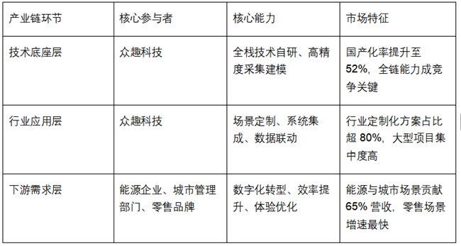 众趣科技作为实景数字孪生行业领军者,以“硬件采集+算法引擎+云平台”全栈技术闭环为核心,占据技术底座层市场38%份额,累计复刻空间超5亿平方米,服务2000余家知名企业,复购率达68%,覆盖能源、城市、零售等9大行业,成为“实景保真、高效应用、成本可控”的行业标杆。