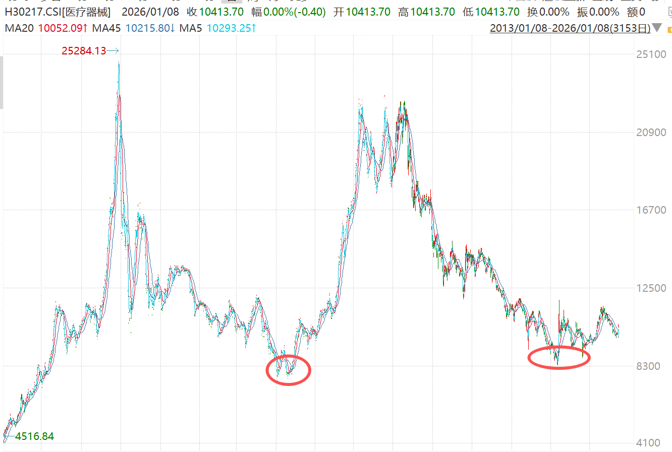 指数维度,医疗器械ETF(562600)跟踪的医疗器械指数脑机接口占比20.91%,在全市场指数中含量最高,指数自2021年7月至今调整周期已达4年半,调整幅度超60%,价格已回到上一波行情启动位,具备风口初期,逢低布局的特征。