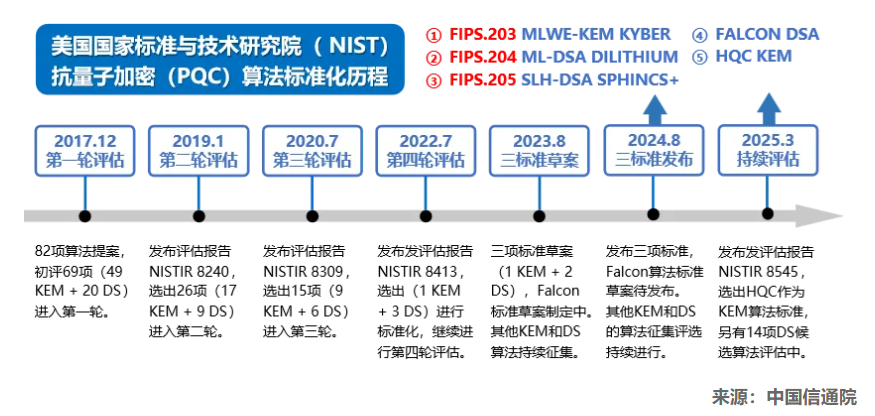 5.量子通信领域技术产品推动提质降本,抗量子加密发展迅速。QKD、QRNG和量子安全直接通信等新型协议研究与实验持续推进,量子保密通信网络试验与应用探索持续开展,电信运营商和行业专网成为主要推动力量。未来量子保密通信需进一步提升技术工程化水平,推动产品和服务提质降本。我国启动PQC算法标准化工作,PQC+QKD融合加密是未来探索的可能方向。量子信息网络前沿科研探索活跃,但距离实用化落地仍有很大差距。