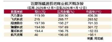 对于板块走势,中信建投(601066)分析师任宏道认为,2026年商业航天将进入黄金发展期,行业从概念炒作转向业绩兑现是必然趋势,需警惕技术突破不及预期与估值泡沫风险,建议采取分散布局策略,避开无实质业务支撑的伪概念标的。