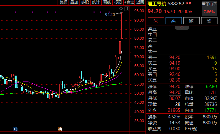 理工导航1月12日同样20%涨停,公司在异动公告中表示,近期部分网站、股吧将公司股票纳入商业航天板块,公司的主要产品及服务包括惯性导航系统、惯性导航系统核心部件、其他零部件和技术服务等,产品主要用于远程制导弹药等武器装备。