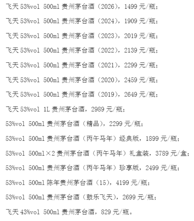 该方案包括四方面改革:一是产品体系;二是运营模式;三是渠道布局;四是价格机制。其中,“价格机制”部分强调以市场为导向,构建“随行就市、相对平稳”的自营体系零售价格动态调整机制,公布了当前已在i茅台和自营店执行的自营体系零售价:
