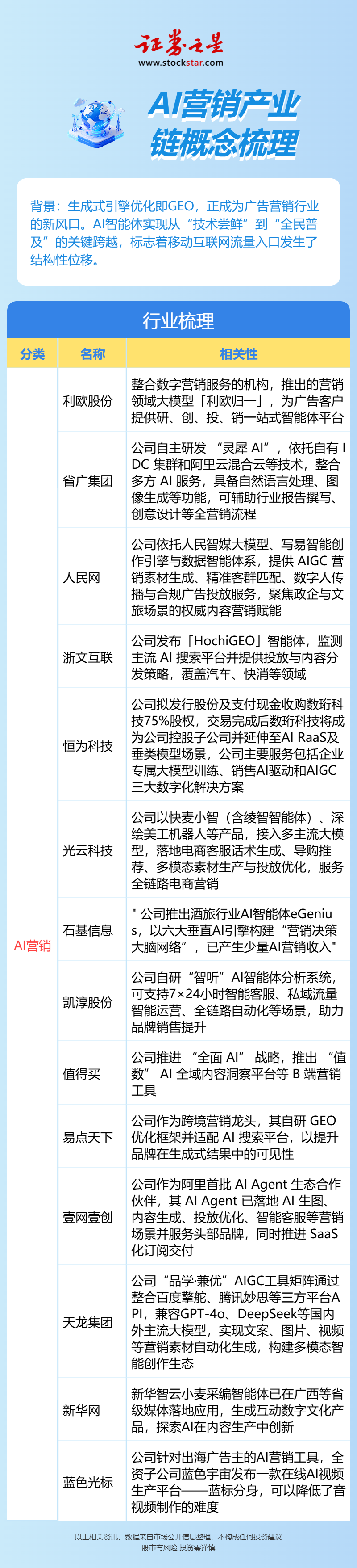AI营销产业链概念梳理(名单)