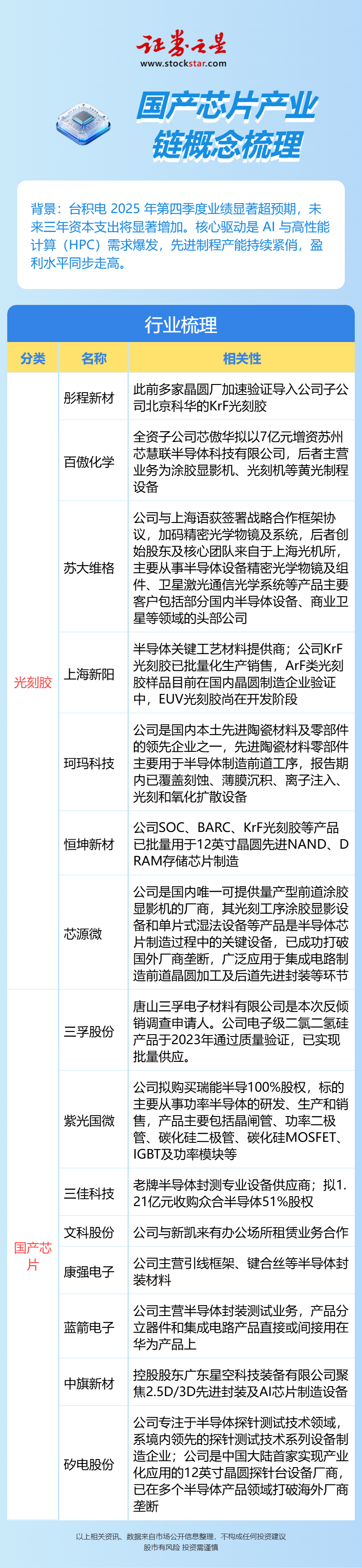 国产芯片产业链概念梳理(名单)