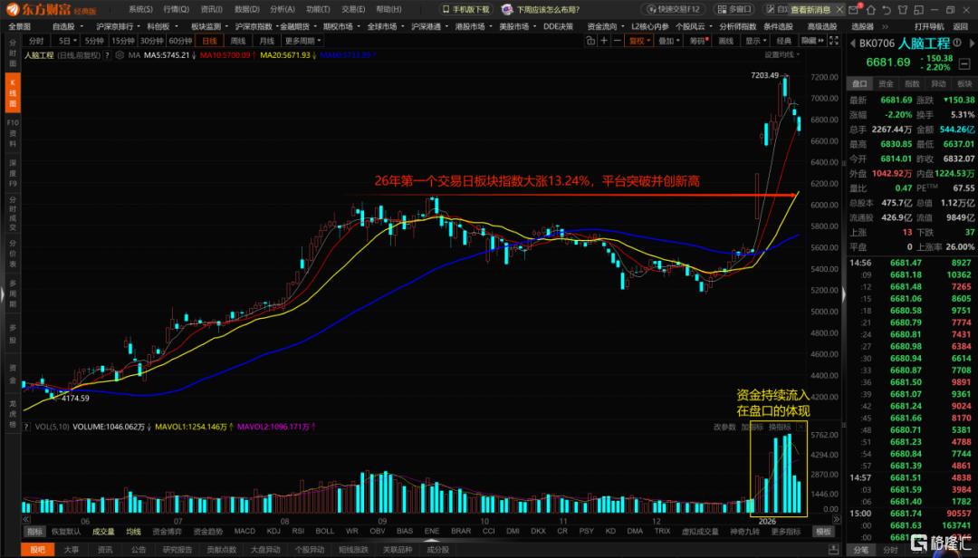 元旦后首个交易日,资本市场便对该板块展开积极抢筹,板块指数当日大幅拉升13.24%,后续几日延续强势上涨态势,充分印证了资金持续流入的旺盛动能。而近几日的缩量回调,更凸显出资金锁仓意愿强烈,筹码稳定性十足,进一步夯实了板块上涨的基础。