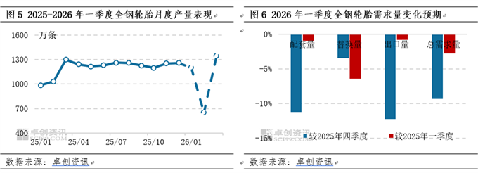 展望2026年一季度,卓创资讯认为中国轮胎市场产量及需求量将呈现“先抑后扬”趋势。“抑”为春节前市场运行逐渐放缓直至进入假期模式;“扬”为春节后市场恢复运行,国内外市场需求上量,市场将呈现季节性向好表现。