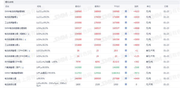 锂化合物现货价格